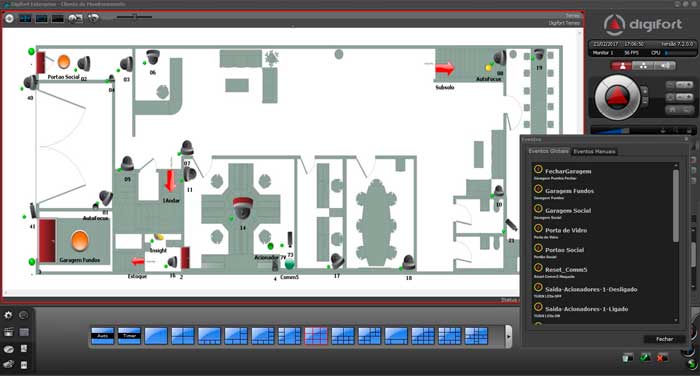 Digifort posee una administración completa de alarmas y eventos, reconoce alarmas de cualquier dispositivo en contacto seco que esté conectado a las cámaras o servidores de video.