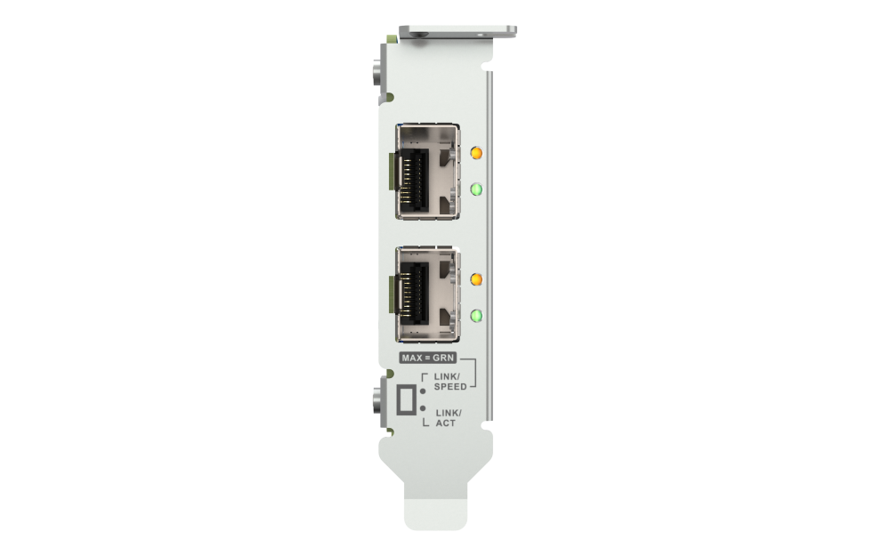 La tarjeta de expansión de red 10 GbE QXG-10G2SF-X710, con dos puertos SFP+ 10 GbE (10G/1G), tiene un consumo bajo y es asequible. Se trata de una solución ideal para equipos que necesitan acceder de forma simultánea a los datos, para fotógrafos o productores de vídeo que buscan una transmisión de datos rápida y fluida o para aplicaciones de virtualización sensible a la latencia.