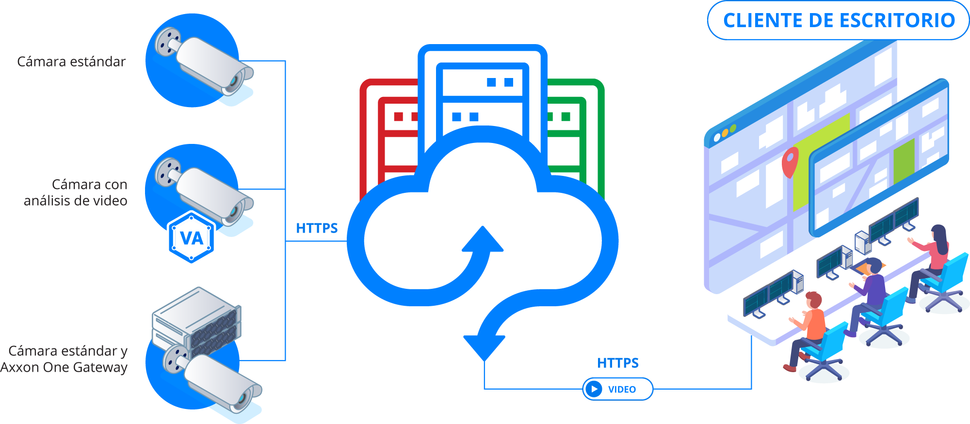Plataforma de software para construir soluciones de videovigilancia alojado en la nube e híbrido