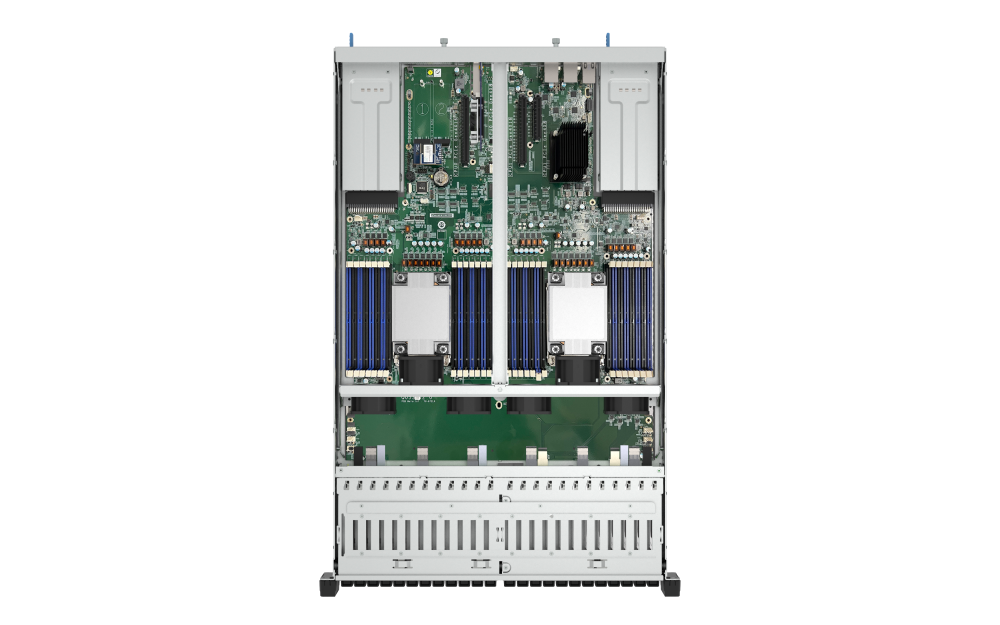 El TDS-h2489FU R2 de 24 bahías incluye dieciséis ranuras PCIe NVMe U.2 de 2,5 pulgadas y ocho ranuras PCIe NVMe/SATA U.2 de 2,5 pulgadas a 6 Gbps, además de cuatro ranuras de expansión PCIe Gen 4 para una rápida actualización a redes de 25 GbE/100 GbE y almacenamiento a nivel de PB, lo que facilita el acceso y el crecimiento de datos a alta velocidad.