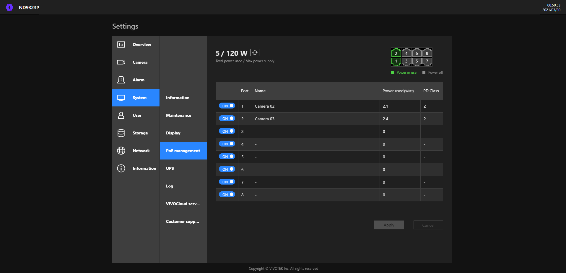 Permite a los usuarios solucionar problemas fácilmente, controlar el presupuesto de potencia para una mejor operación y establecer la configuración de prioridad de puerto para garantizar que las cámaras más importantes estén siempre en funcionamiento. Cuando la alimentación del sistema está sobrecargada, los puertos PoE se reinician automáticamente para recuperar la fuente de alimentación.