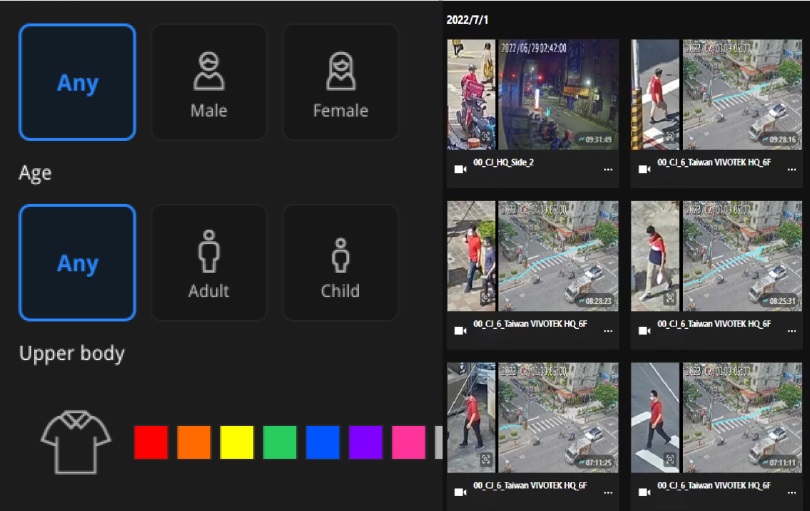 El firmware Core+ AI lleva a Core+ a un nivel superior. Los Core+ AI NVR están potenciados con Deep Search, utilizando AI para proporcionar la experiencia de usuario de búsqueda de evidencia más rápida, inteligente y eficiente. Las cámaras VIVOTEK habilitadas con Vision Object Analytics proporcionan los metadatos utilizados por la IA de Deep Search. La búsqueda profunda se compone de dos funciones principales: búsqueda de atributos y búsqueda de escenas.