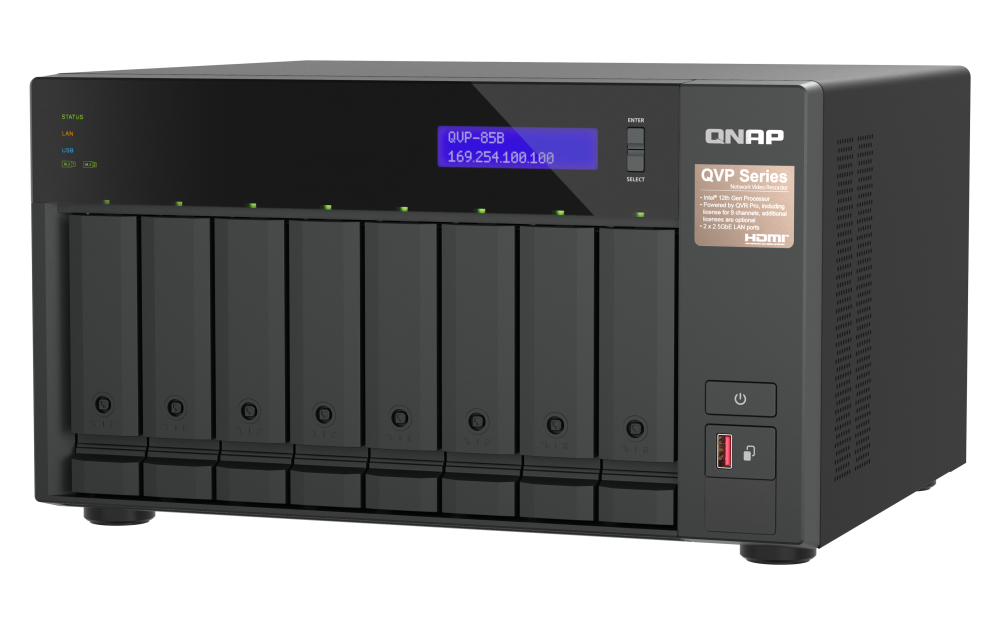 El QVP-85B QVR Pro es un servidor de vigilancia de red basado en torre con un procesador Intel® Core™ de varios núcleos que admite ocho canales de cámara IP gratis y hasta sesenta y cuatro canales de cámara IP. Al ofrecer una solución de vigilancia de vídeo económica y de alto rendimiento que integra software y hardware, el QVP-85B responde a las necesidades de un almacenamiento de videovigilancia seguro, fiable y centralizado para oficinas y empresas pequeñas.
