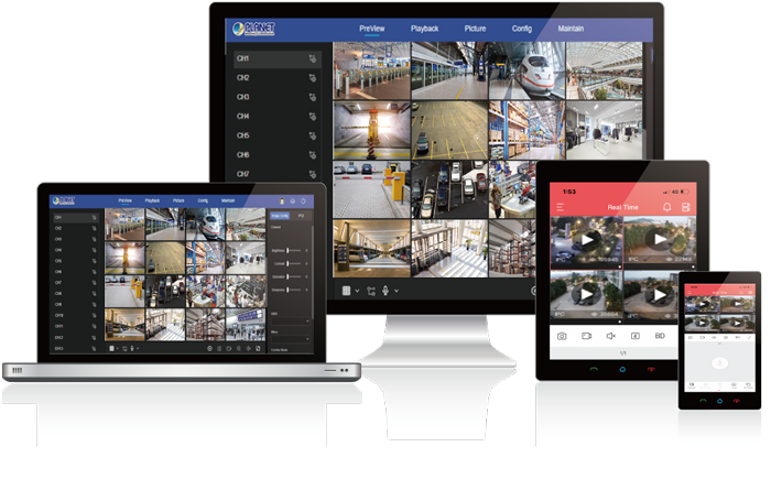 El NVR-1600 proporciona capacidad de gestión de vigilancia central con la adopción de su software de gestión de vídeo PLANET incluido. Con el PVMS, el sistema NVR-1600 NVR se puede ampliar para la gestión de múltiples sitios de hasta 256 canales de cámaras IP simultáneamente. Además, los usuarios pueden monitorear el NVR a través del visor de aplicaciones móviles o el navegador web en cualquier momento y en cualquier lugar.