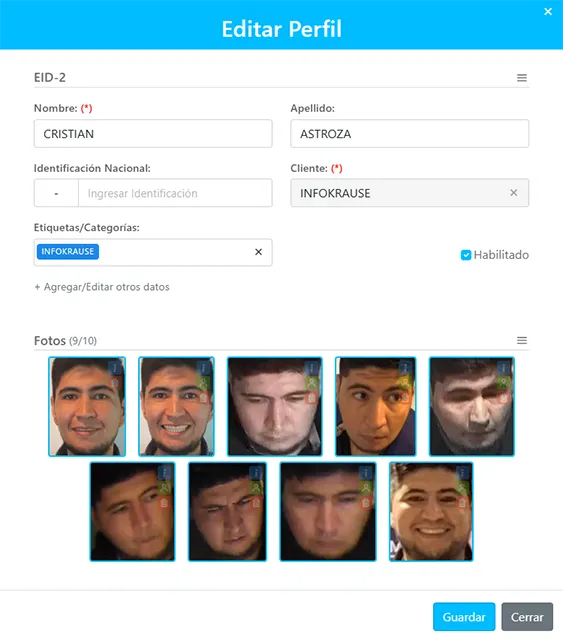 Además, IKFace permite activar la autoclasificación de perfiles, una función que realiza la recolección automática de imágenes necesarias para construir y mejorar cada perfil sin intervención manual.