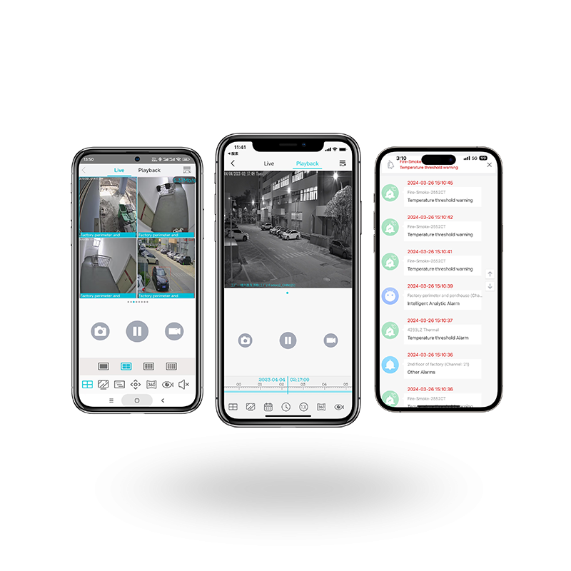 - Admite visualización en vivo y reproducción de video. La visualización en vivo admite diseños de pantalla de 1/4/9/16.